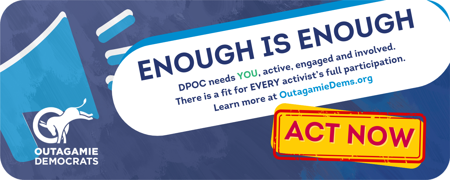 As mentioned at the last meeting our Constitution and Bylaws are getting a refresh. The document will be read at the member meeting, then will go to a vote. Guest meeting attendees please note, voting is for members only. New or renewing members can sign up at: OutagamieDems.org/membership